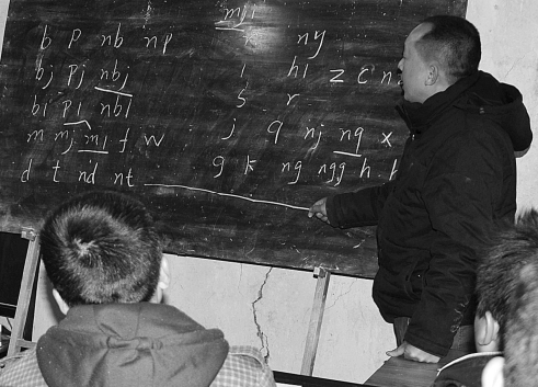 Yang Zhengjiang teaches the language of Miao ethnic group in a classroom in Southwest China's Guizhou province. Yang, who studied the Miao language at Guizhou Minzu University, set up a work team in 2009 to teach Miao characters.